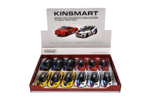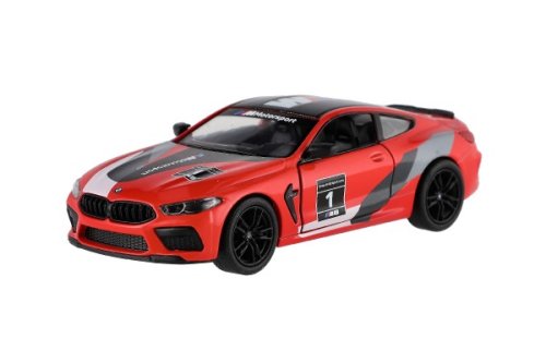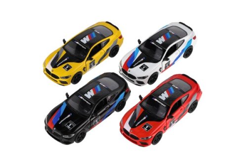 Krásny kovový model auta BMW M8 Competition Coupé 1:38. Autíčko má otváracie dvere a je na spätné natiahnutie. Dostupné v štyroch farebných variantoch. Veľkosť auta je 12 cm. Vhodné pre deti od 3 rokov.