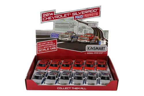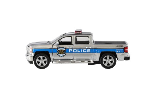 Krásny kovový model auta Chevrolet 2014 Silverado Police v mierke 1:46. Autíčko má otváracie dvere a je na spätné natiahnutie. Dostupné v dvoch farebných variantoch. Veľkosť auta je 13 cm. Vhodné pre deti od 3 rokov