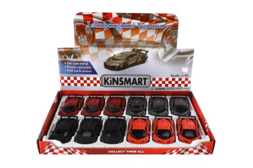 Krásny a verný kovový model športového auta Lamborghini Veneno. Dostupné je v 4 farebných variantoch a je na spätné natiahnutie. Vhodné od 3 rokov.