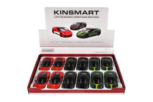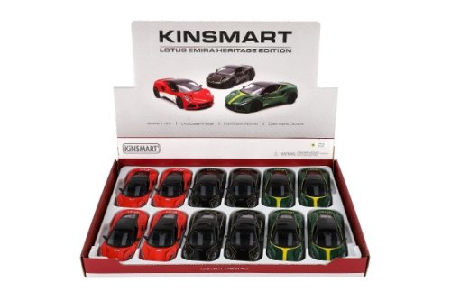 Krásny kovový model auta Lotus Emira 1:38. Autíčko má otváracie dvere a je na spätné natiahnutie. Dostupné v troch farebných variantoch. Veľkosť auta je 12 cm. Vhodné pre deti od 3 rokov