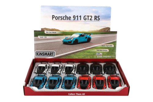 Krásny kovový model auta Porsche 911 GT2 RS v mierke 1:36. Autíčko má otváracie dvere a je na spätné natiahnutie. Dostupné v štyroch farebných variantoch. Veľkosť auta je 13 cm. Vhodné pre deti od 3 rokov
