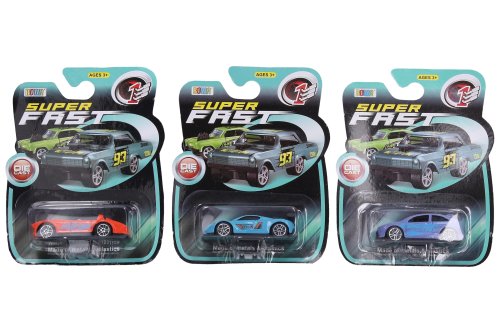 Auto kovové. Veľkosť 7,5 cm. Voľné kolesá. 6 variant - modrá, zelená, žltá, červená, ružová, fialová.