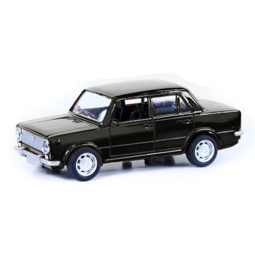 Parádne kovové auto na spätný zotrvačník, má otváracie dvere a jeho dĺžka je cca 12 cm. Táto hračka vychádza z pôvodného modelu Fiat 124 / Seat 124.