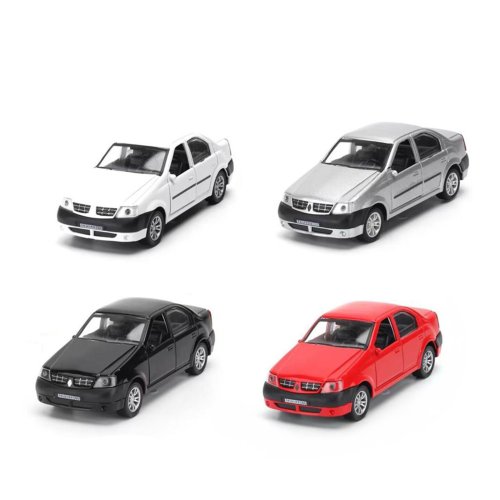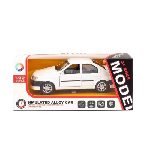 Kovové autíčko s otváracími dverami, pri zatlačení na auto, vydáva rôzne zvuky a svieti. Auto jazdí na spätný zotrvačník. Obsahuje 3 ks batérií typu AG13/LR44.