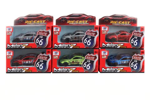 Kovový model športového auta na spätný chod. Rozmery auta cca 10x4x3 cm. Rozmery balenia cca 15x8x6 cm. Vek 3+