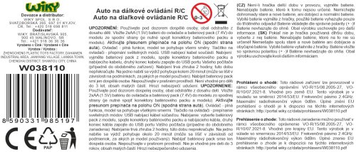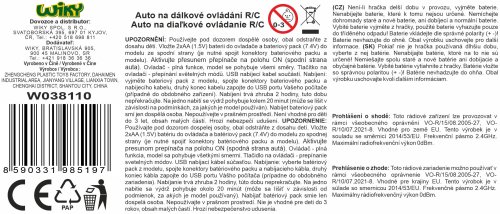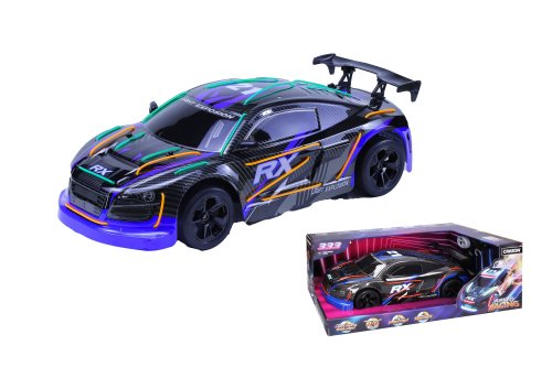 Auto Light Explosion RC na diaľkové ovládanie. Rozmery 44x19x14 cm. Frekvencia 2.4GHz. Pištoľový ovládač. Rýchlosť 15 km/h. Svetelné efekty, prepínanie módov tlačidlom na ovládači. 7.4V 500mAh batériový pack do auta súčasťou, 2xAA do ovládača nie je súčasťou. USB kábel súčasťou.