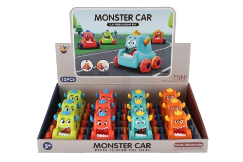 Stlačte hlavu monštier auta, pustite ju a malá príšerka vyrazí rýchlo vpred. Rozmer auta: 9 x 8 cm Vhodné od 3 rokov