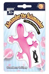 Hravý osviežovač vzduchu POWER AIR Alexander v tvare mloka na upevnenie do mriežky ventilátora automobilu.