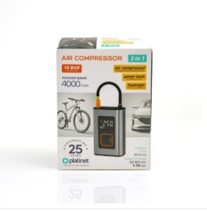 Platinet 3v1 Kompresor, Powerbanka a LED svietidlo Multifunkčné zariadenie ideálne pre domáce aj cestovné použitie.