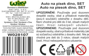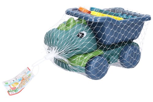 Auto na piesok dino sklápacie. Dĺžka 27 cm. So sklápacou korbou. Obsah balenia - auto, sitko 2x lopatka, 2x formička. Voľné kolesá.