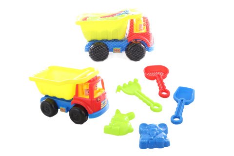 Súprava na piesok obsahuje auto, lopatku, sitko, hrabličky a 25 bábovky. balené v sieťke. Rozmer cca 23 x 14 x 13 cm. Vek 3+