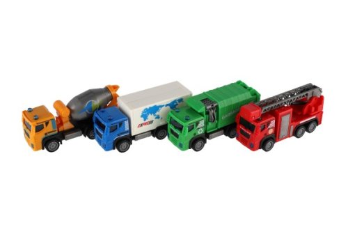 Vybrať si môžete zo 4 druhov áut, či už stavebné, nákladné alebo prevozné. Auto je na spätné natiahnutie veľkosti 15 cm. Vhodné pre deti od 3 rokov.