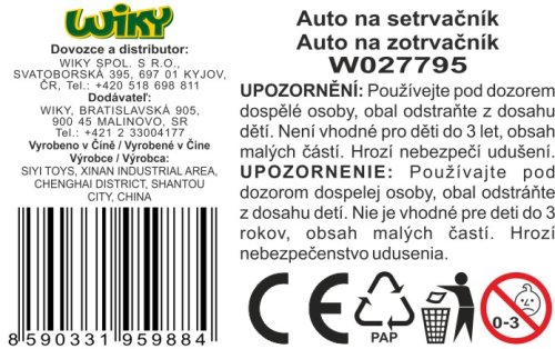 Auto. Rozmery 8,5x5x5,5 cm. Na zotrvačník. 4 varianty - sanitka, polícia, hasiči, smetiari.