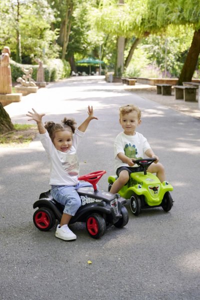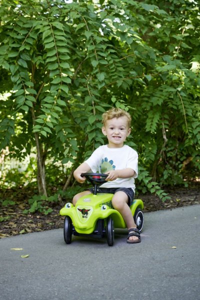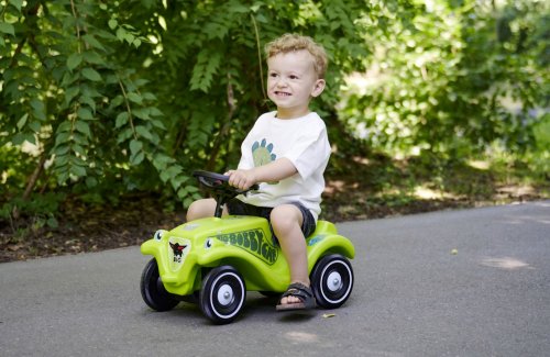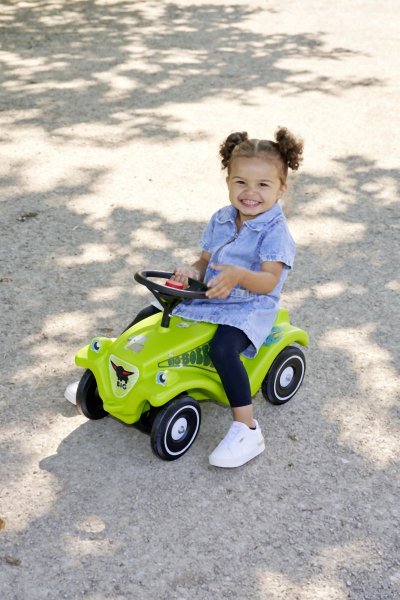 Odstrkovadlo s klaksónom, obrázky dinosaurov, vo veselej zelenej farbe. Pevný, robustný plast. Nosnosť 50 kg. Rozmery: 58 x 30 x 38 cm.