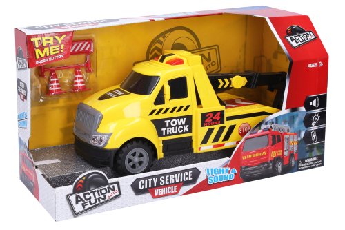 Odtiahni zle zaparkované auto a ukáž vodičom, kto je v meste skutočným pánom. Auto odťahovka na zotrvačník. Veľkosť 32 cm. Svetelné a zvukové efekty, aktivácia tlačidlom na streche. Pohon na zotrvačník. Pohyblivé rameno s hákom. Odporúčaný vek: 3+