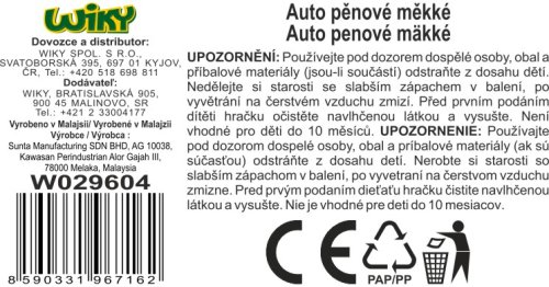 Auto penové mäkké. Dĺžka 15,5 cm. Voľné kolesá. Vhodné na hryzenie.