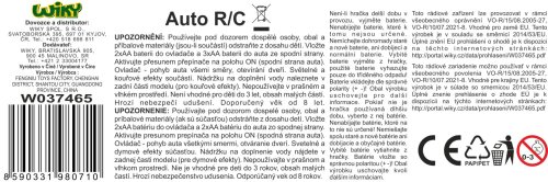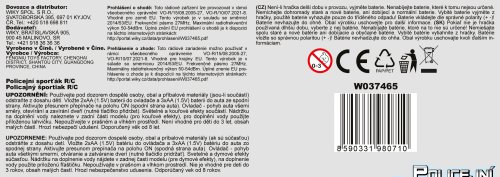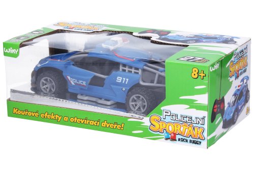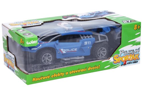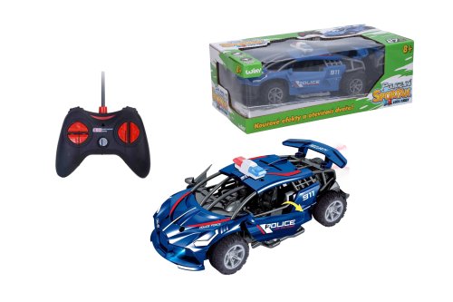 Auto policajné RC na diaľkové ovládanie. Veľkosť 21 cm. Frekvencia 27MHz. Diaľkovo otváracie dvere. Svetelné a dymové efekty. 3xAA batérie do auta, 2xAA do ovládača nie sú súčasťou. Prepínač ON/OFF na spodnej strane auta. Tlačidlo na ovládači - otváranie dverí. Nádrž v zadnej časti pred krídlom. Nádobka na vodu súčasťou.