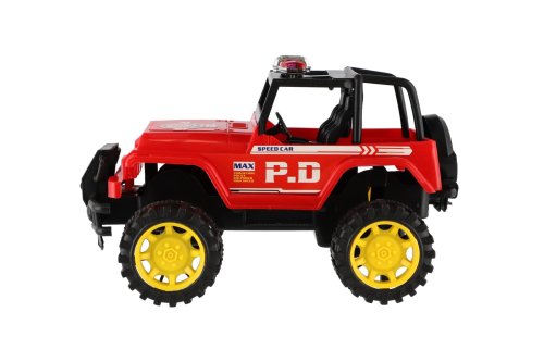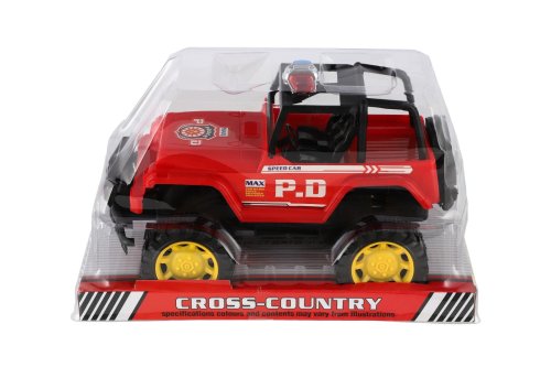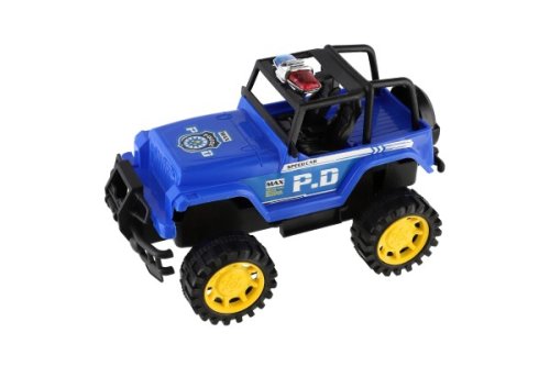 Plastový policajný jeep na zotrvačník o veľkosti cca 22 cm. S týmto už vám neujde žiadny lump v teréne. Vhodné od 3 rokov.