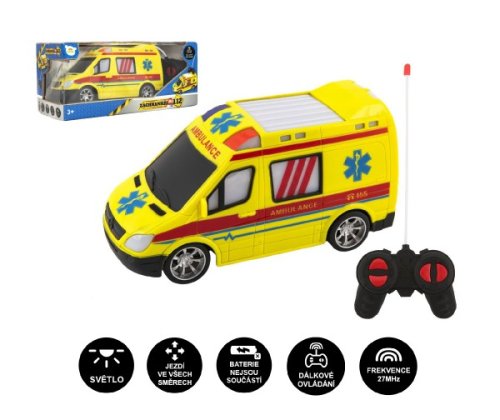 Naštartujte sanitku a vyrazte zachraňovať ľudské životy! Vďaka tejto RC sanitke budete všade viditeľne a včas! Jazdí vo všetkých smeroch a je na diaľkové ovládanie a samozrejme svieti. Frekvencia je 27 MHz. Batérie nie sú súčasťou balenia. Rozmer auta: 20 cm Rozmer krabice: 28 x 13 x 11 cm Vhodné pre deti od 3 rokov