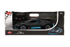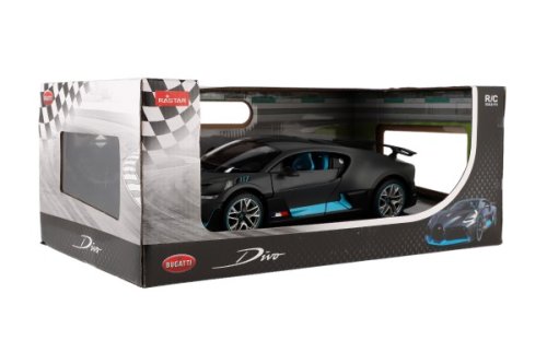 Krásny RC model auta Buggatti Divo v šedej farbe s modrými prvkami. Jedná sa o prepracovaný model s plastovými doplnkami, auto má otváracie dvere. Auto je na diaľkové ovládanie v tvare športového volantu a dokáže sa pohybovať do štyroch smerov – dopredu, dozadu, doprava a doľava. Frekvencia je 2,4GHz. Mierka je 1:14. Do auta patrí 5x batéria AA, do ovládača 2x batéria AA, ktoré nie sú súčasťou balenia. Prevádzková doba: 30 minút Vzdialenosť diaľkového ovládania: 20 metrov Veľkosť auta je 32 cm. Rozmer balenia: 43 x 18 x 25 cm Vhodné pre deti od 6 rokov