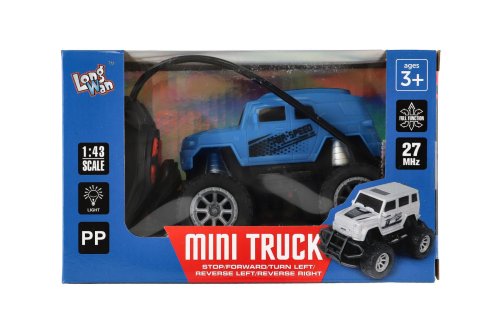 Závodný zážitok v mini formáte! Tento RC mini truck v modrej farbe prináša množstvo zábavy. Funguje na frekvencii 27MHz. Ideálne auto na preteky v interiéri aj vonku. Auto na batérie 4 x AA, ktoré nie sú súčasťou balenia. Veľkosť auta: 12 cm Rozmer balenia: 18 x 11,5 x 10 cm Vhodné pre deti od 3 rokov