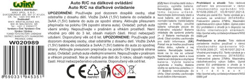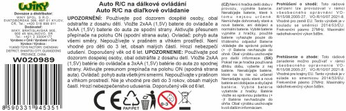 Auto RC na diaľkové ovládanie. Veľkosť 18 cm. Frekvencia 27 MHz. Auto 3xAA, ovládače 2xAA nie sú súčasťou. Prepínač ON/OFF na spodnej strane auta. 2 varianty - oranžová, modrá.
