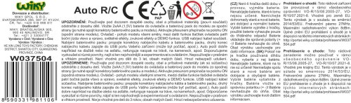 uto RC na diaľkové ovládanie. Veľkosť 23 cm. Frekvencia 2.4 GHz. Svetelné a zvukové efekty. 3.7V 500mAh batériový pack súčasťou, 2xAA do ovládača nie sú súčasťou. USB kábel súčasťou. Prepínač ON/OFF na spodnej strane auta. Ovládač - Predné tlačidlá - pohyb kolmo vľavo a vpravo, tlačidlo - svetelné efekty, - tlačidlo - zvukové efekty, tlačidlo - auto (demo).