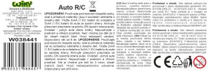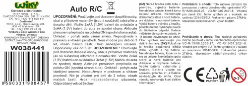 Auto RC na diaľkové ovládanie. Rozmery 17x9x7, 5 cm. Frekvencia 27 MHz. 3xAA do auta, 2xAA do ovládača nie sú súčasťou. Prepínač ON/OFF na spodnej strane auta.