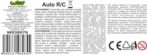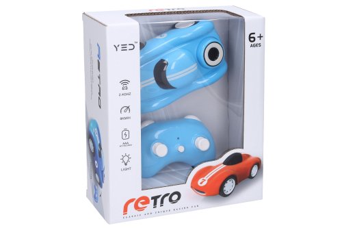 Auto retro závodné RC na diaľkové ovládanie. Rozmery 15,5x8,5x6,5 cm. Frekvencia 2.4GHz. Rýchlosť 8 km/h. Dosah až 25 m. Svetelné efekty. 3xAAA batérie do auta, 2xAAA batérie do ovládača nie sú súčasťou. Tlačidlo ON/OFF na ovládači, prepínač ON/OFF na spodnej strane auta.
