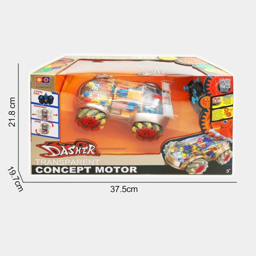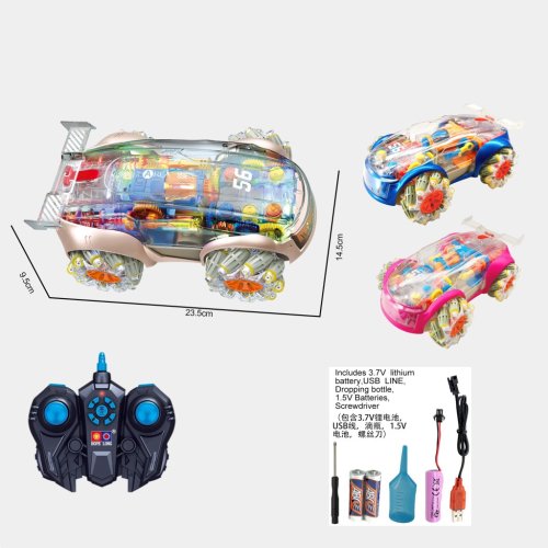 Funkcie a vlastnosti: Svetelné a zvukové efekty pre maximálnu zábavu Transparentný vzhľad – sleduj vnútorný mechanizmus v pohybe Dymový efekt – naplň zadnú časť auta vodou a sleduj dym Multismerný pohyb – dopredu, dozadu, do strán i bočný drift Tlačidlo pre ukážku – podrž po dobu 3 sekúnd a aktivuj dymový efekt