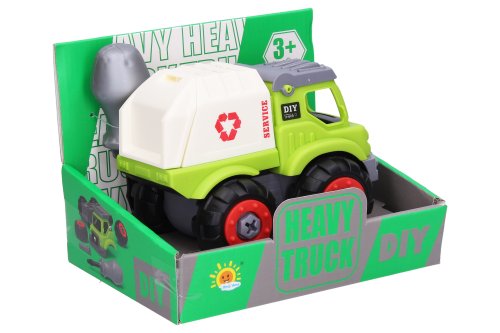 Auto skrutkovacie. Rozmery 13x9x9 cm. Voľné kolesá. Obsahuje auto, skrutková k.2 varianty - nákladné, smetiarske.
