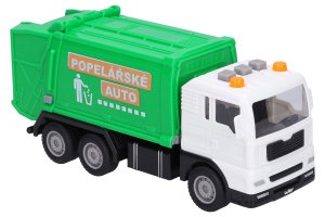 Auto smetiarske - Míša Růžičková. Veľkosť 17 cm. Na zotrvačník. Svetelné a zvukové efekty, tlačidlami na kabíne 3 pesníčky Míši Růžičkové - Smetiari, Policajná, Sanitka. 3xAG13 batérie súčasťou.