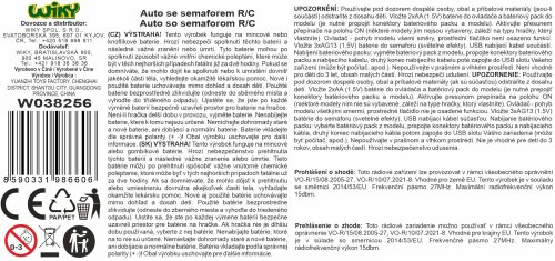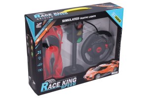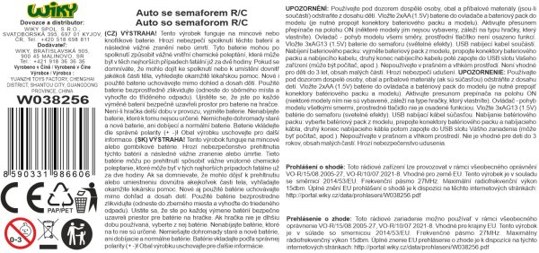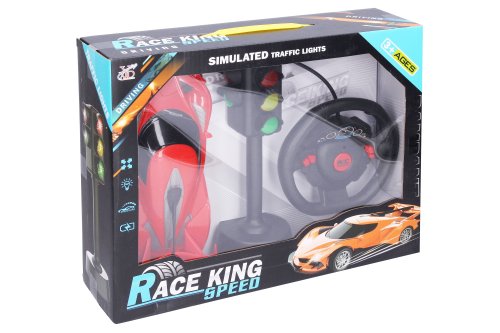 Auto so semaforom RC na diaľkové ovládanie. Rozmery 23,5x9,5x4,5 cm. Svetelné a zvukové efekty. USB kábel súčasťou. Prepínač ON/OFF na spodnej strane auta. 3.7V batériový pack do auta súčasťou, 2xAA do ovládača nie je súčasťou, 3xAG13 do semaforu. 2 varianty - červená, oranžová.