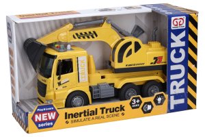 Auto stavebný bager na zotrvačník s efektmi. Veľkosť 28 cm. Vydáva svetelné a zvukové efekty. Aktivácia tlačidlami na streche (1 tlačidlo - zvuk motora, zvuk bagrovania, 2 tlačidlo - zvuk cúvania, zvuk trúbenia. Batéria 3xAG13, súčasťou (1,5V). Otvárateľné dvere, pohyblivé rameno bagru, na zotrvačník.