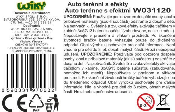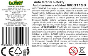 Auto terénne s efektmi. Rozmery 23x12,5x10,5 cm.