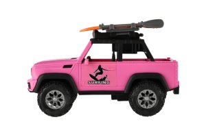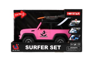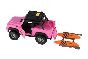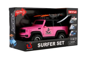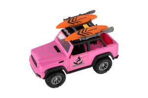 Model auta pre milovníkov surfovania a dobrodružstva. Na streche má 2 surfy a pádla. Svoju pozornosť priťahuje vďaka ružovej farbe a je veľkosti 22 cm. Vozidlo má otváracie dvere a je na zotrvačník. Batérie 3 x AG13 sú súčasťou výrobku. Rozmery balenia 27 x 16 x 13 cm. Vhodné pre deti od 3 rokov.