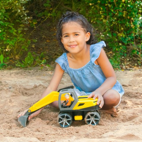 Prepracovaný bager zo série TRUXX 2 je veľmi pevný a odolný, vhodný aj na hranie vonku, na pieskovisku. Je vybavený figúrkou usmievavého vodiča a priestor jeho kabíny je ľahko prístupný hrám. Otočné telo bagru je opatrené jednoduchou výsuvnou poistkou, ktorá ho zafixuje vo východiskovej polohe. Plne funkčné rameno s lyžicou je možné jednoducho ovládať pomocou madla. Hračka je vyrobená z nezávadného plastu, dodávaná v pestrofarebnej krabici s priehľadom. Hlavné vlastnosti: figúrka vodiča, prístupná kabína otočné telo opatrené poistkou funkčné, ľahko ovládateľné rameno a lyžice pevné a odolné prevedenie vyrobené v Českej republike