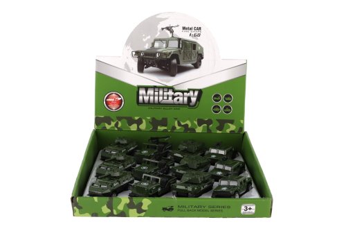 Vojenské auto, ktoré by vám nemalo chýbať vo vašej vojenskej výbave či zbierke vojenských modelov a hračiek. Auto je na spätné natiahnutie v mierke 1:60. Rozmer auta: 7-8 cm Vhodné pre deti od 3 rokov