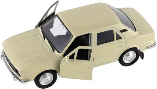 Model osobného auta s otváracími dverami a kufrom, pripravený na pridanie do Vašej zbierky. Auto je striekané originálnym autolakom. Luxusné vozidlo je vyrobené z kovu a má plastové doplnky. Vozidlo je vernou kópiou reálnych áut značky Škoda 105L. Rozmer krabice: 15 x 7 x 7 cm Vhodné od 3 rokov