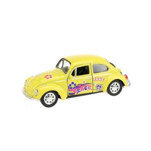 Krásny model VW beetle na spätné natiahnutie s kvetinovým potlačou je tu v mierke 1:32. Autíčko o veľkosti 12 cm môže mať každý z nás neustále pri sebe. Zmestí sa do väčšieho vrecka alebo mamičke do kabelky a cestovanie či dlhé čakanie tak rýchlo utečie. Skvelé na hranie alebo pretekanie. Rozmery: 12 x 5 x 4,5 cm Vhodné pre deti od 3 rokov