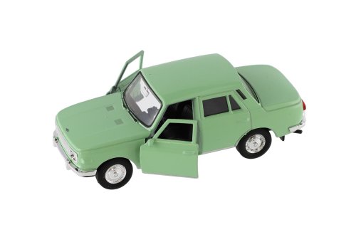 Auto Wartburg 353 je vyrobené z kovových a plastových dielov. Auto má otváracie dvere. Balené v papierovej krabičke s fóliovým priehľadom. Priskrutkované na papierovom podstavci s popisom typu. Rozmer auta: 12 cm Rozmer balenia 15 x 7 x 6,5 cm Vhodné pre deti od 3 rokov
