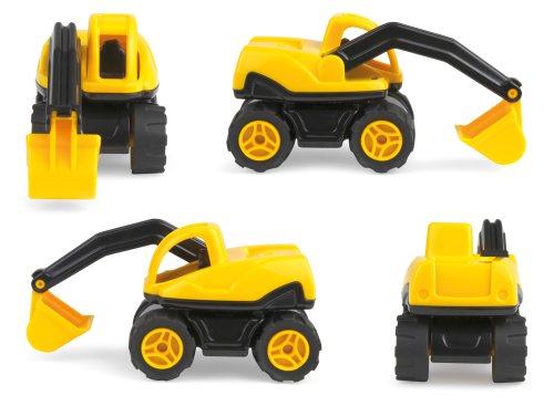 Bager vyrobený z odolného ABS plastu s vysoko kvalitnými pogumovanými kolesami. 4mm pozinkované oceľové osi. Veľkosť 13 cm