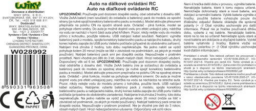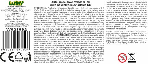 Auto závodné fajčiace RC na diaľkové ovládanie. Rozmery 22x11x6, 4 cm. Pištoľový ovládač. Frekvencia 27 MHz. Batériový pack 3.7V 400mAh do auta súčasťou, 2xAA batérie do ovládač nie sú súčasťou. USB kábel súčasťou. Nabíjanie 60 min, dosah 25 m. Nádržka na vodu v hornej časti auta pred krídlom.