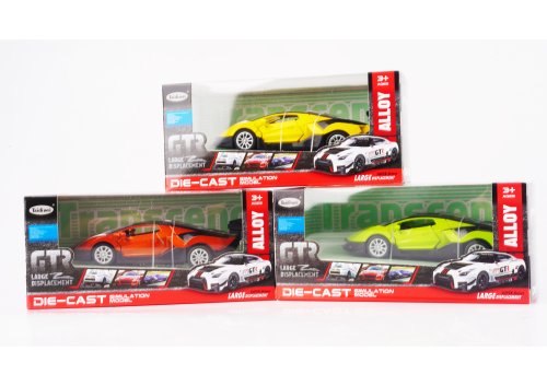 Auto závodné kovové na spätné natiahnutie. Presné rozmery 12x5,2x3,2 cm. 3 varianty - červená, žltá, zelená.