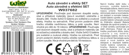 Auto závodné s efektmi set 4ks. veľkosť auta 26cm. Obsahuje veľké auto, 2malé autá 7cm, 2 panáčiky. Svetelné a zvukové efekty. Zotrvačník. Batéria 3xAG13 súčasťou.