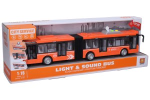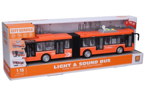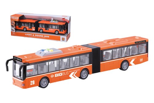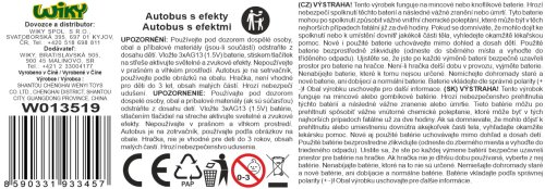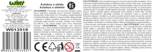Autobus jazdí na zotrvačník. Svetelné a zvukové efekty. Efekty sa aktivujú 4 tlačidlami na streche autobusu.