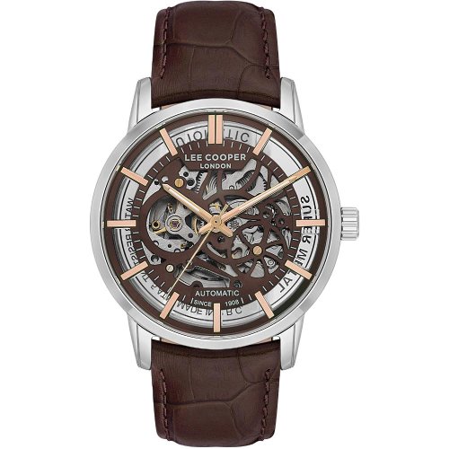 Pánske náramkové hodinky Automatický pohon Priemer puzdra 44,0 mm Puzdro v tvare kruhu Kovové puzdro Kožený ťah Ručičkový ciferník Ciferník s dvanástimi indexmi Materiál skla - minerálne sklo Odolné proti vode pri bežnom nosení