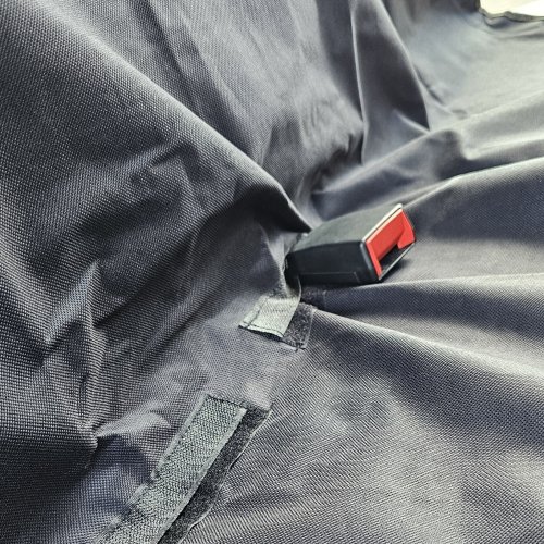 Jednoduché uchytenie pomocou popruhov k opierkam hlavy zaistí stabilnú polohu deky aj pri pohybe zvieraťa. Kryje celú plochu zadných sedadiel vrátane priestoru medzi nimi a poskytuje tak kompletnú ochranu interiéru.