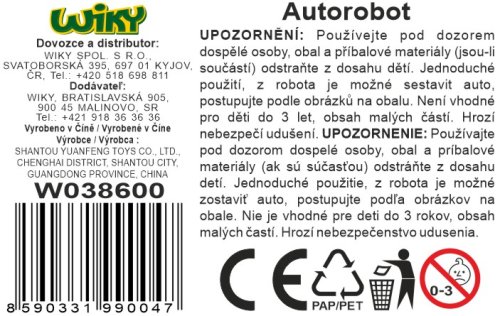 Autorotopánok. Rozmery 20x8x21 cm. Obrázkový návod na zostavenie na zadnej strane obalu. 2 farebné varianty - zelená, modrá.
