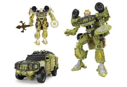 Autorotopánok. Veľkosť 17 cm. Transformácia na obrnené vozidlo. Balenie obsahuje 2 zbrane - meč a píla. Voľné kolesá. 2 varianty - modrá, zelená.